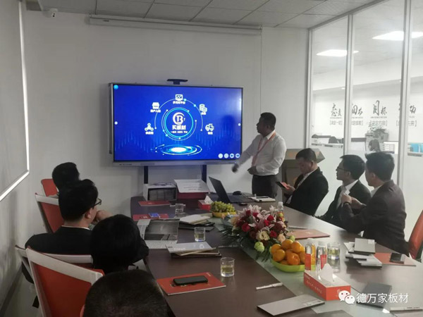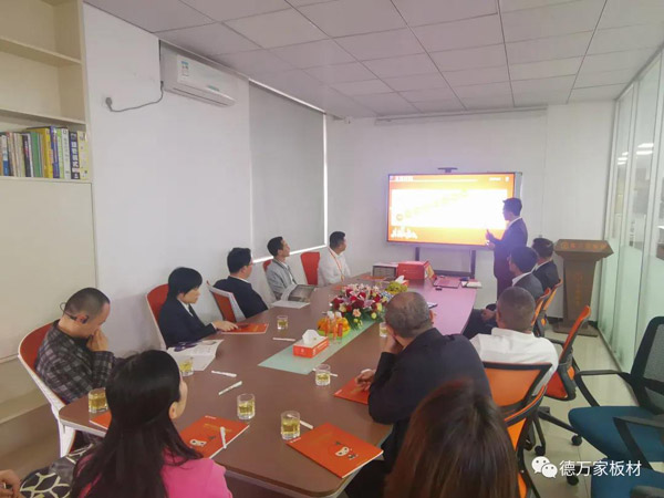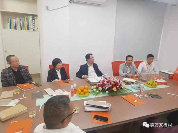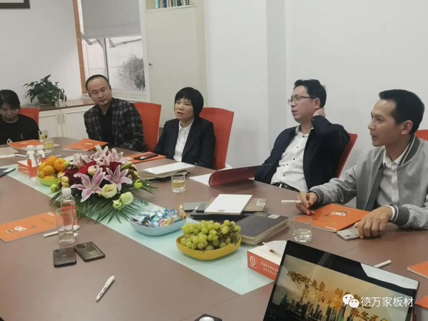 尊龙凯时集团董事长王德胜向各位领导深入细致地介绍了集团的发展历程、战略方向等。集团子公司买板材副总经理汪永超向领导介绍了“买板材网”的功能。会后,考察团参观了尊龙凯时集团的办公环境和物流配送中心。