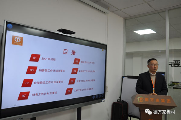 上海买板材事业部各职能部门负责人和营销团队全员对2021年工作进行了回顾和总结,分析了存在的问题、提出了改善措施,分享了工作业绩的闪亮点,规划了2022年度工作计划。